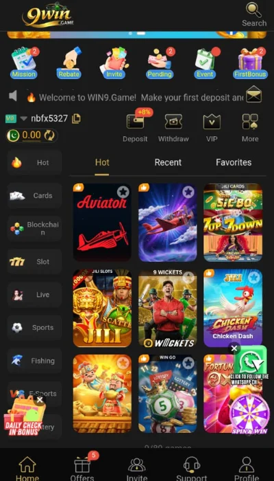 - Open the 9WIN real cash game