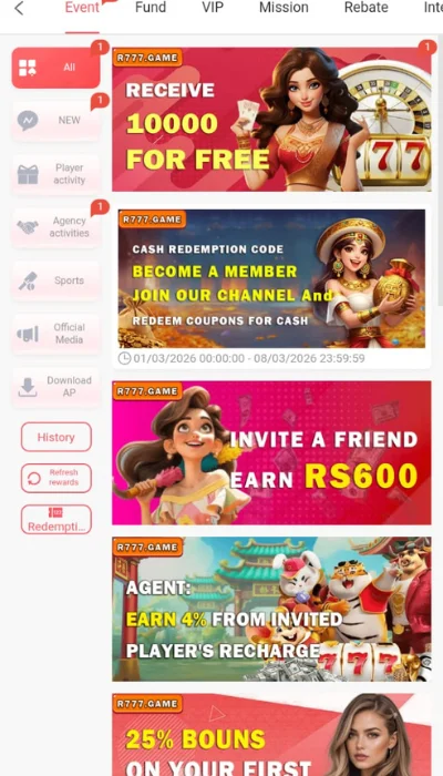 Players can invite others through a unique referral link. If new users register via that link, referral rewards may be credited per platform rules. For this, you need to download the R777 referral bonus game